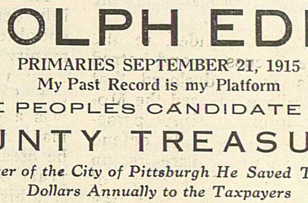 After serving as city treasurer for five years, Adolph Edlis ran unsuccessfully for the position at the county level.