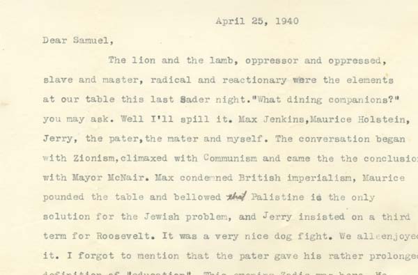 Albert “Yale” Ziskind chronicled a lively Passover seder for his brother Sam, who was studying at Yale University.