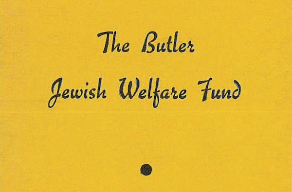 Annual report from the Jewish Welfare Fund of Butler, Pa. Lists members, donors by name and amount, and recipients of funds. English, 15 pages.