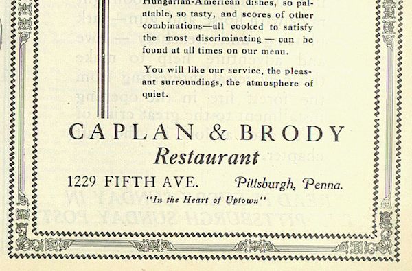 Caplan & Brody advertisment, describing professionalism of waitstaff and Hungarian-American cuisine. Date October 17, 1924 Identifier 1924-10-17 Criterion p7.jpg Collection Jewish Criterion Source Pittsburgh Jewish Newspaper Project View Document