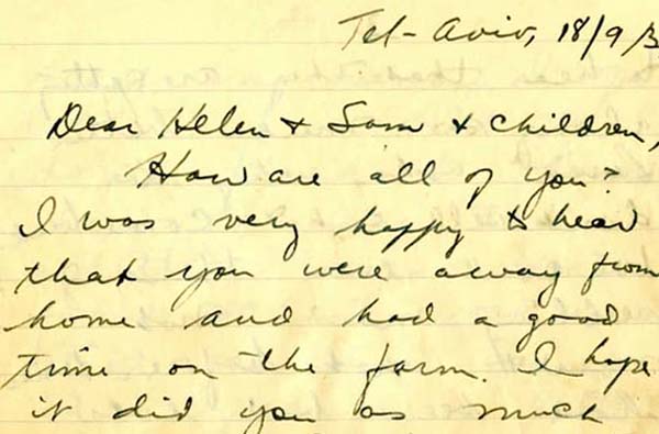 David and Celia Levy wrote to their daughter and son-in-law Helen and Sam Rosen from their home in Tel Aviv.