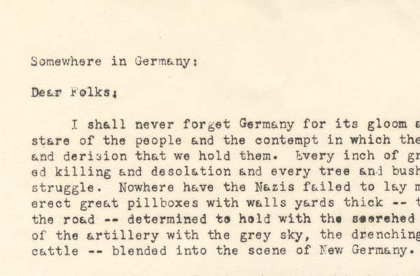 Gerald Ziskind described a battle in Germany in graphic detail for his family. Date December 13, 1944 Identifier MSS_1033_B003_gerald_letter_12131944 Collection Ziskind Family Papers and Photographs Source Rauh Jewish Archives at the Heinz History Center Family The Ziskind Family : View Family Member View Document