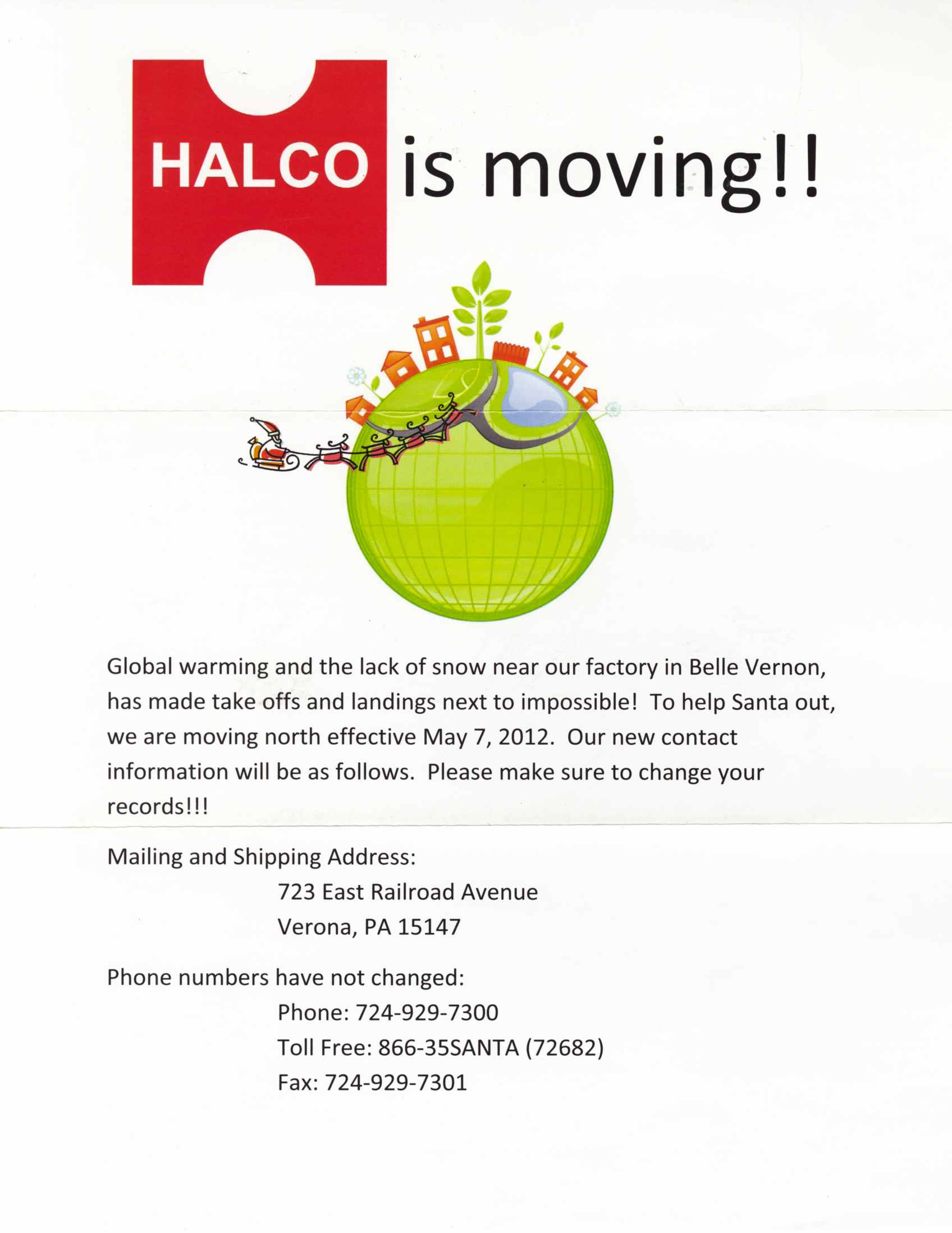 Letter sent to HALCO customers with the company’s new Verona, Pa. address. Date 2012 Identifier MSS_1247_B001_F026_I01 Collection Sidlow and Hoffman Papers and Photographs [MSS 1247] Source Rauh Jewish Archives at the Heinz History Center Family Hoffman Family : View Family Member View Document