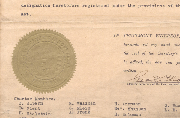 The Jewish community of New Castle chartered a free loan society in 1912 and formally incorporated the charitable organization with this 1931 filing.