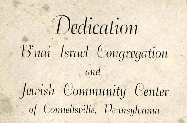 Congregation B’nai Israel of Connellsville acquired its synagogue building from a local church in 1910 and renovated the building in 1953 and 1954. The renovation also brought an expansion of its focus, adding a community center onto the synagogue functions.