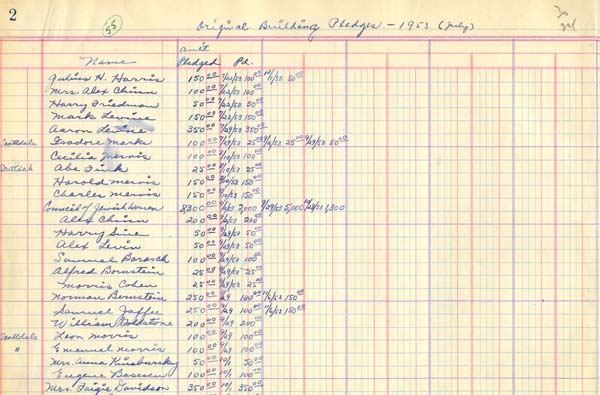 This list of “original building pledges” for the Jewish Community Center of Connellsville show that the community included members from nearby Mt. Pleasant and Scottdale.
