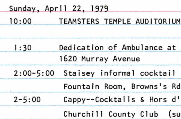 A day from Judge Lawrence Kaplan’s campaign schedule when he ran for re-election to the Family Division of the Allegheny County Court of Common Pleas in 1979.