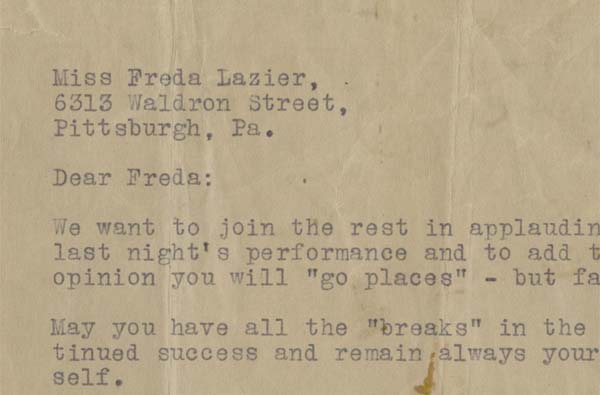 N. Ralph Stantley of Klirtone Recording made this pitch to Freda Lazier after she won a national radio contest.