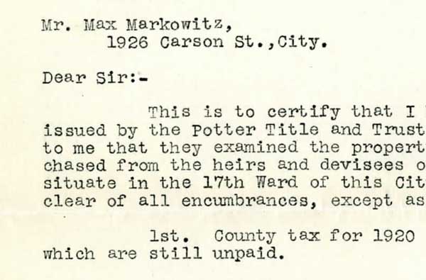 While running a millinery shop on East Carson Street for many years, Max and Rosa Markowitz acquired additional property in the South Side.