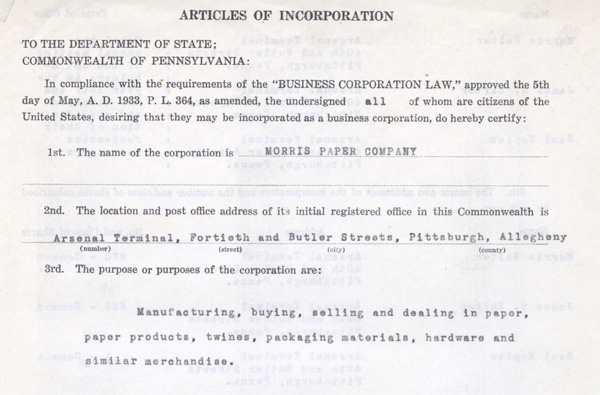 Morris Balter and his son James Balter, along with their partner Saul Kaplan, incorporated the Morris Paper Company in 1948. Morris Balter had founded the company 20 years earlier.