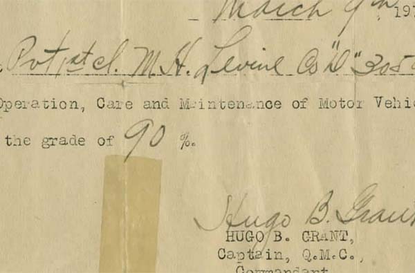 A World War I combat veteran, Morris Levine trained to become an auto mechanic. Date March 9, 1919 Identifier 20050227_F003_schoolcertificate.pdf Collection Morris Levine Collection Source Rauh Jewish Archives at the Heinz History Center Family The Levine Family : View Family Member View Document