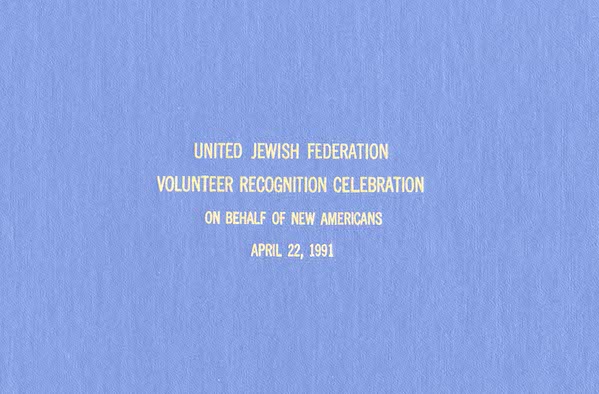 “United Jewish Federation Volunteer Recognition Celebration on Behalf of New Americans.” Booklet recognizing volunteer contributions to help recently immigrated Soviet Jews to resettle in Pittsburgh area. Booklet includes signatures of each volunteer, along with their volunteer contributions. English, handwritten, six pages.