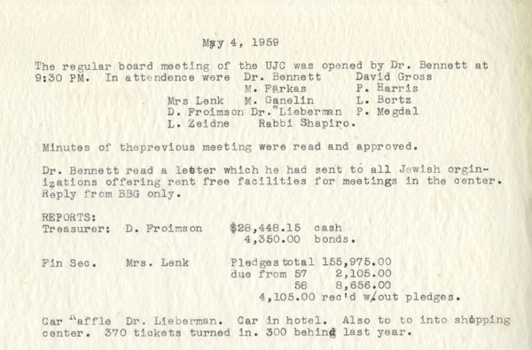 Beth El Congregation, a Reform congregation in Beaver Falls, was reluctant to join the Beaver Valley United Jewish Community. In May 1959, a segment of the Reform community discussed the possibility of creating a new congregation that would affiliate with the united community. At the same meeting, the board discussed the possibility of allowing families in nearby Rochester, Pa. to join the center.