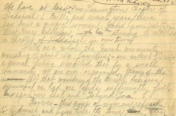 Minute book from the New Kensington chapter of Hadassah. Handwritten, English, 68 pages. Date 1930-1934 Identifier MFF4869_I01_P001-004 Collection Hadassah New Kensington Chapter Minute Book [MFF 4869] Source Rauh Jewish Archives at the Heinz History Center View Document