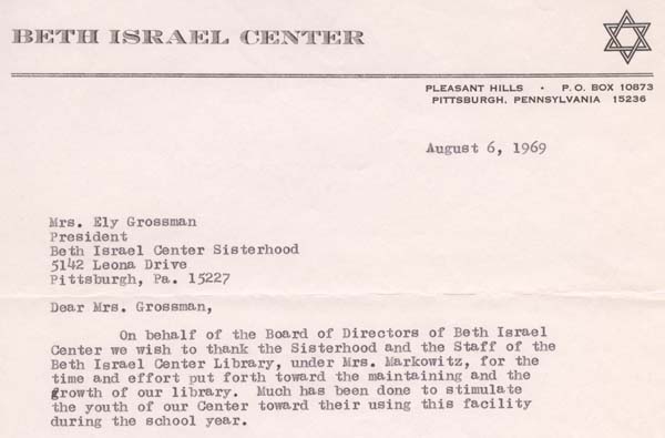 When the Beth Israel Center Sisterhood was incorporated in 1959, its responsibilities included High Holiday babysitting and Sunday School assistance. Over time, the Sisterhood also oversaw the congregation’s library, among many other responsibilities.