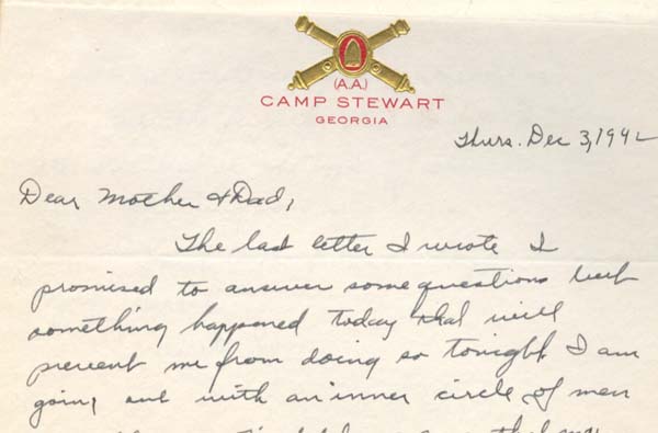 While stationed at Camp Stewart, Ga., Burton Hirsch was promoted to sergeant technician for his “service above self” during a meningitis scare.