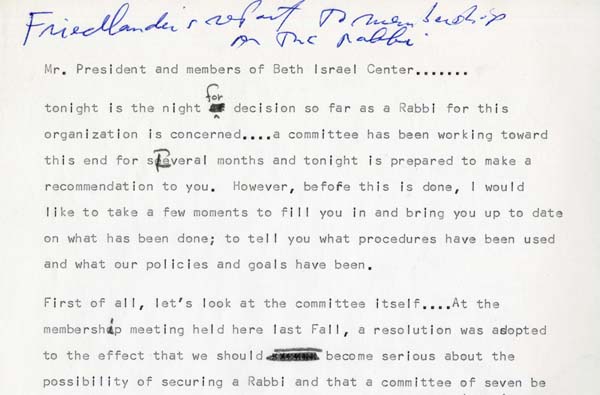 Before issuing the recommendation of the Rabbi Seeking Committee to the members of Beth Israel Center, chair Sydney Friedlander presented a summary of the work leading up to its recommendation.