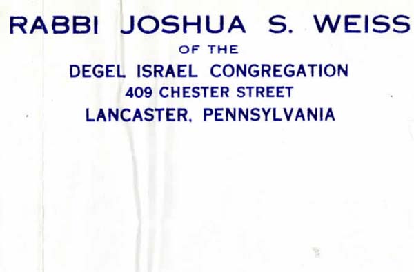 After working in Lancaster, Pa., in the late 1930s and early 1940s, Rabbi Joshua Weiss applied for a position at the Homestead Hebrew Congregation.