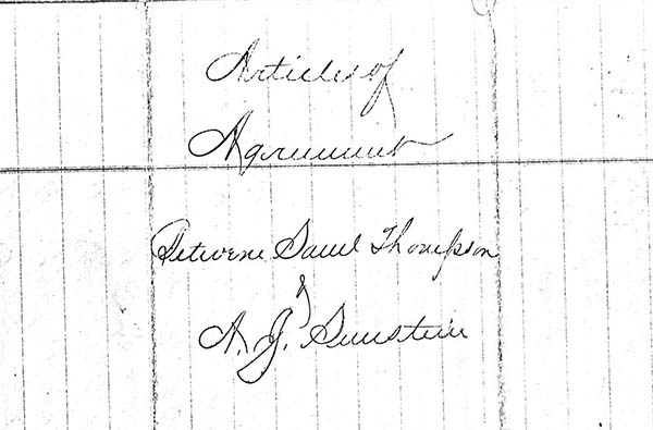 Articles of agreement between Samuel Thompson and Cass Sunstein for property in Bridgeport, Pa. in Fayette County. Handwritten, three pages, English.