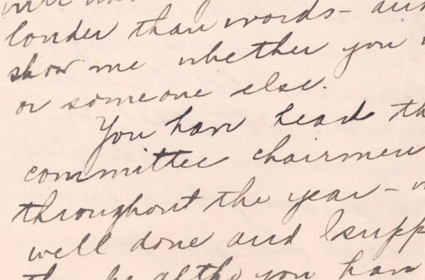 In her message for 1930-1931, Temple Israel Sisterhood President Blanche S. Ehrlich beseeched her membership to assume responsibility for the congregation.