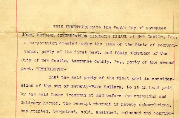 One of the ways Tifereth Israel raised money for operations at its Home Street synagogue was by selling pews through indentures such as this. Isaac Grossman paid $75 for a pair of seats, one for himself in the main sanctuary and one for his wife in the balcony.