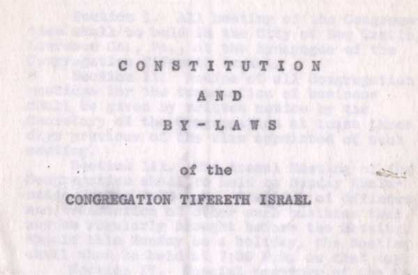 By the 1930s, Congregation Tifereth Israel had become large enough to prompt a revision to its constitution and bylaws, including provisions about the hiring of clergy.