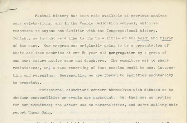 Rather than undertake a “factual history” of the congregation, Temple Beth Israel in Sharon prepared a collection of memories and personal sketches.