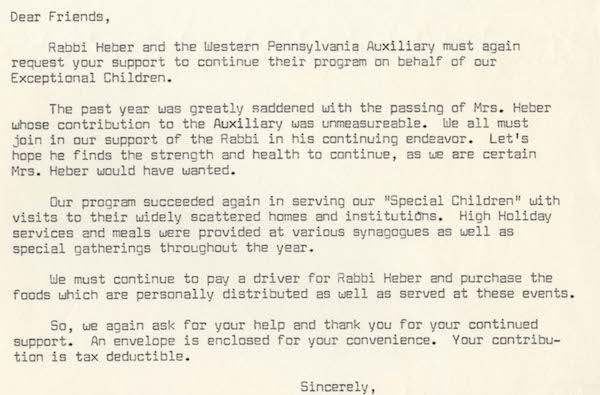 Donation appeal letters from the Western Pennsylvania Auxiliary for Exceptional People, signed by President Samuel Shear. English, four pages.