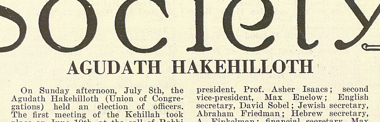 | ↑5 | Agudath Kehillath notice, Jewish Criterion, Jan. 14, 1921 (online). |