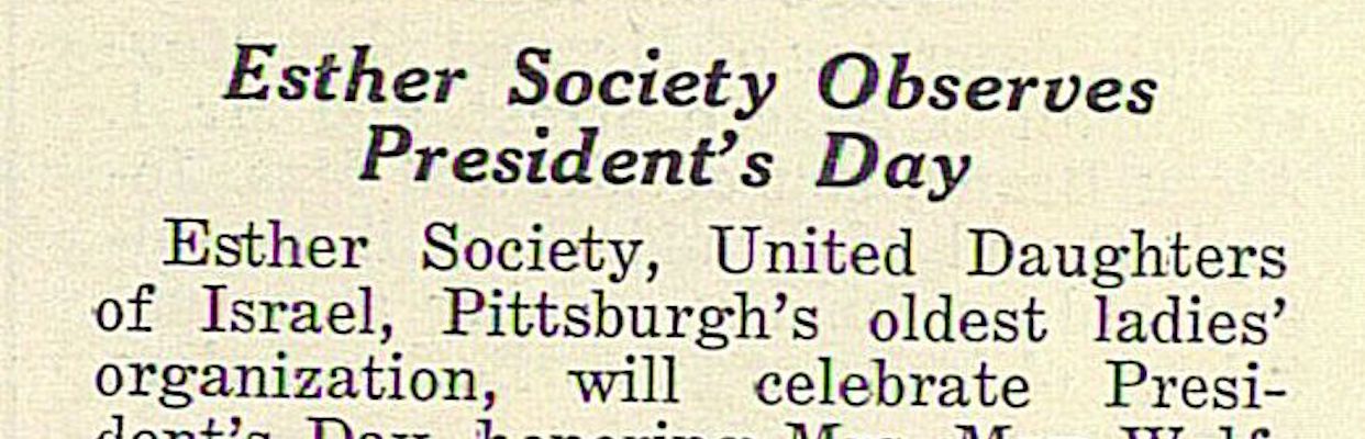 The Esther Society had 120 members by 1907 and continued meeting through the mid-1930s. It held social gatherings and raised funds for select causes. In the early years of World War I, it regularly contributed to the Pittsburgh Jewish Relief Committee.
