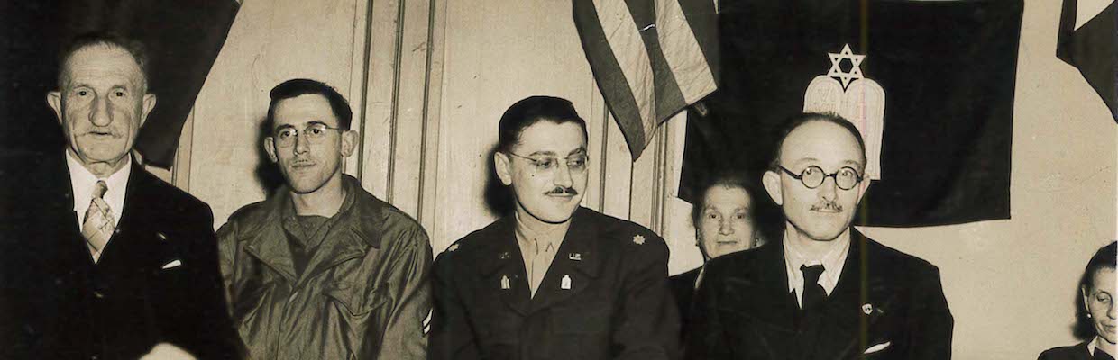 Braude registered for the draft in October 1940 and entered the U.S. Army in May 1941 as a 1st Lieutenant. He was later reassigned to the U.S. Army’s Chaplain’s School at Harvard University and promoted to captain in 1942. Braude went overseas in 1945 as Chaplain to the Seventh Army in the European Theatre of Operations. While serving overseas, Braude organized makeshift Passover seders for Jewish soldiers and civilians in France and Germany. By the end of the war in 1945, Braude was the ranking Jewish Chaplain in Europe.