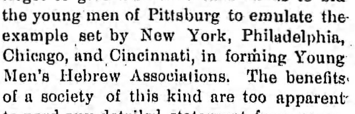 - Pittsburgh YMHA notice, American Israelite, Jan, 2, 1890, p6 (online—Newspapers.com).