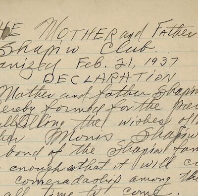The Shapiros were members of Torath Chaim. Sam Shapiro is believed to have celebrated his bar mitzvah during the first service held at the Negley Avenue synagogue in 1927.