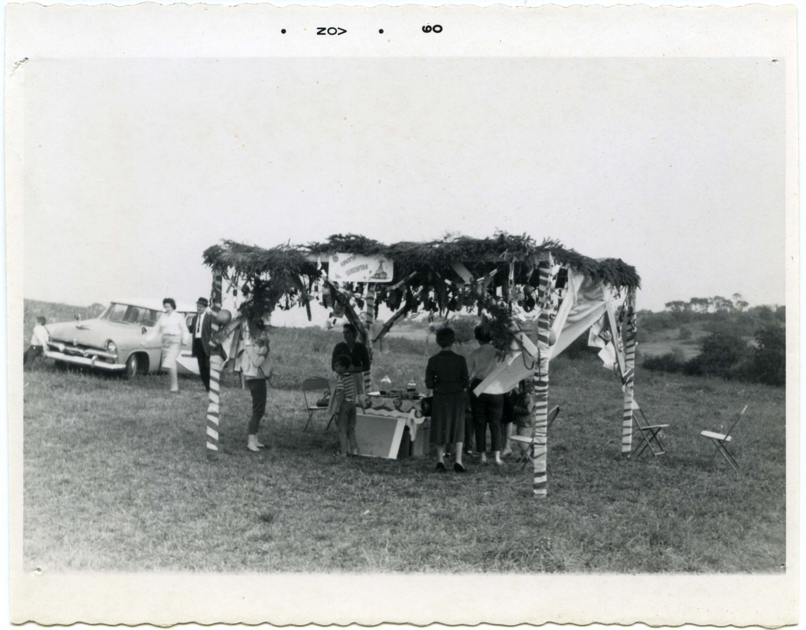 Beth Israel Center members gathered in a sukkah in 1960, in an open space in the South Hills. It would be another three years until the congregation dedicated its synagogue. The “November 1960” date printed along the margin of the photograph does not align with the holiday of Sukkot.