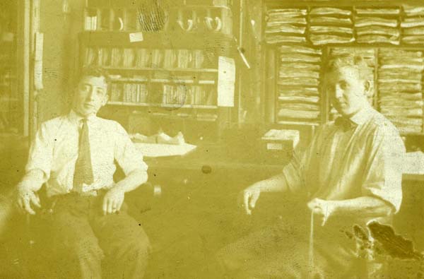 Herbert Frank (left) and an unknown associate in a back room of the Abe Frank store in Irwin, Pa. Date undated Identifier MSP531_B001_F006xxx Collection Buck and Frank Family Photographs (MSP 531) Source Rauh Jewish History Program & Archives at the Heinz History Center Family The Frank Family : View Family Member