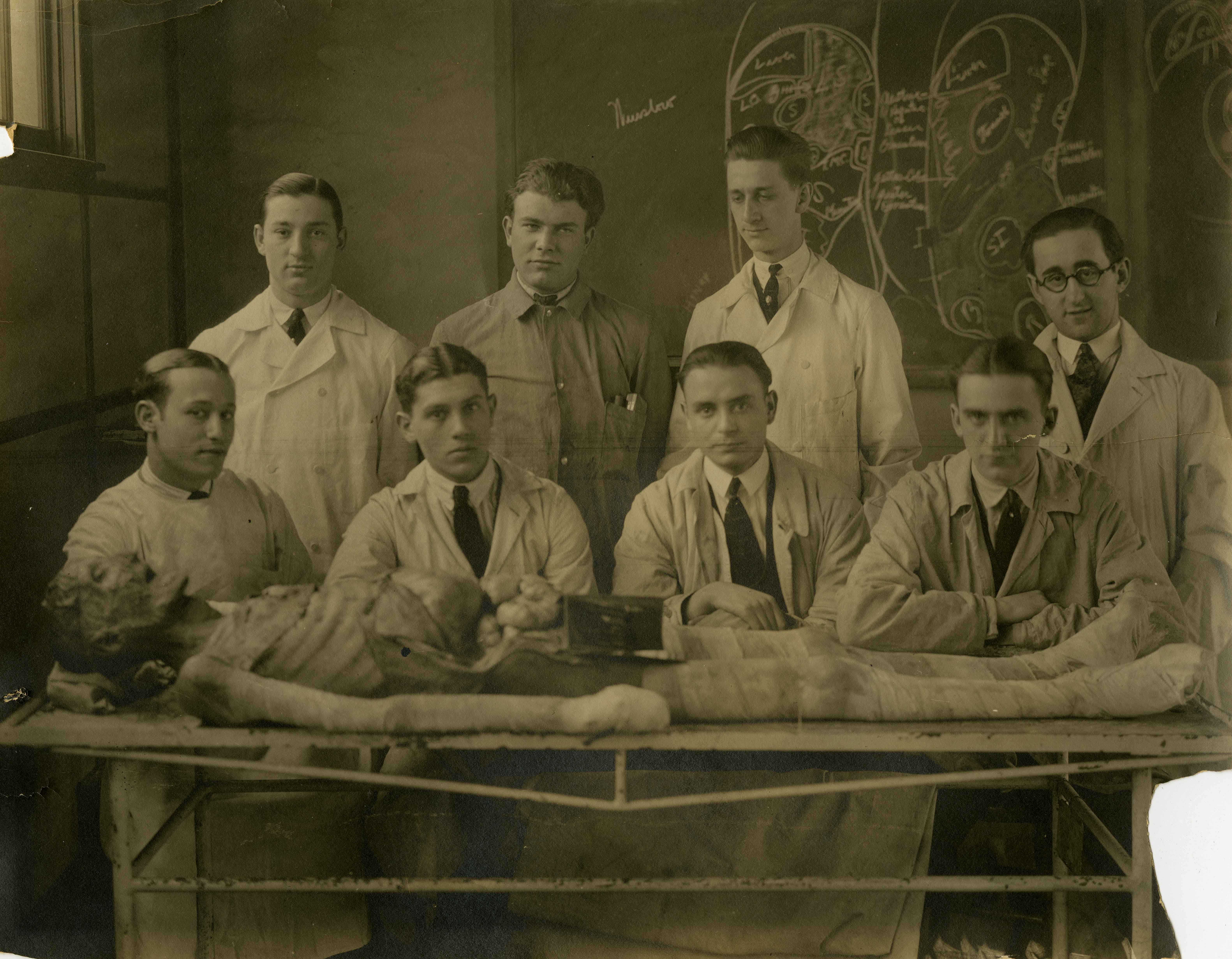 Dental student Henry J. Goldstein, seated second from left, with his classmates and a cadaver. Date c.1920 Identifier MSP300_B002_F005_I02 Collection Henry J. Goldstein Photographs Source Rauh Jewish Archives at the Heinz History Center Family The Goldstein Family : View Family Member