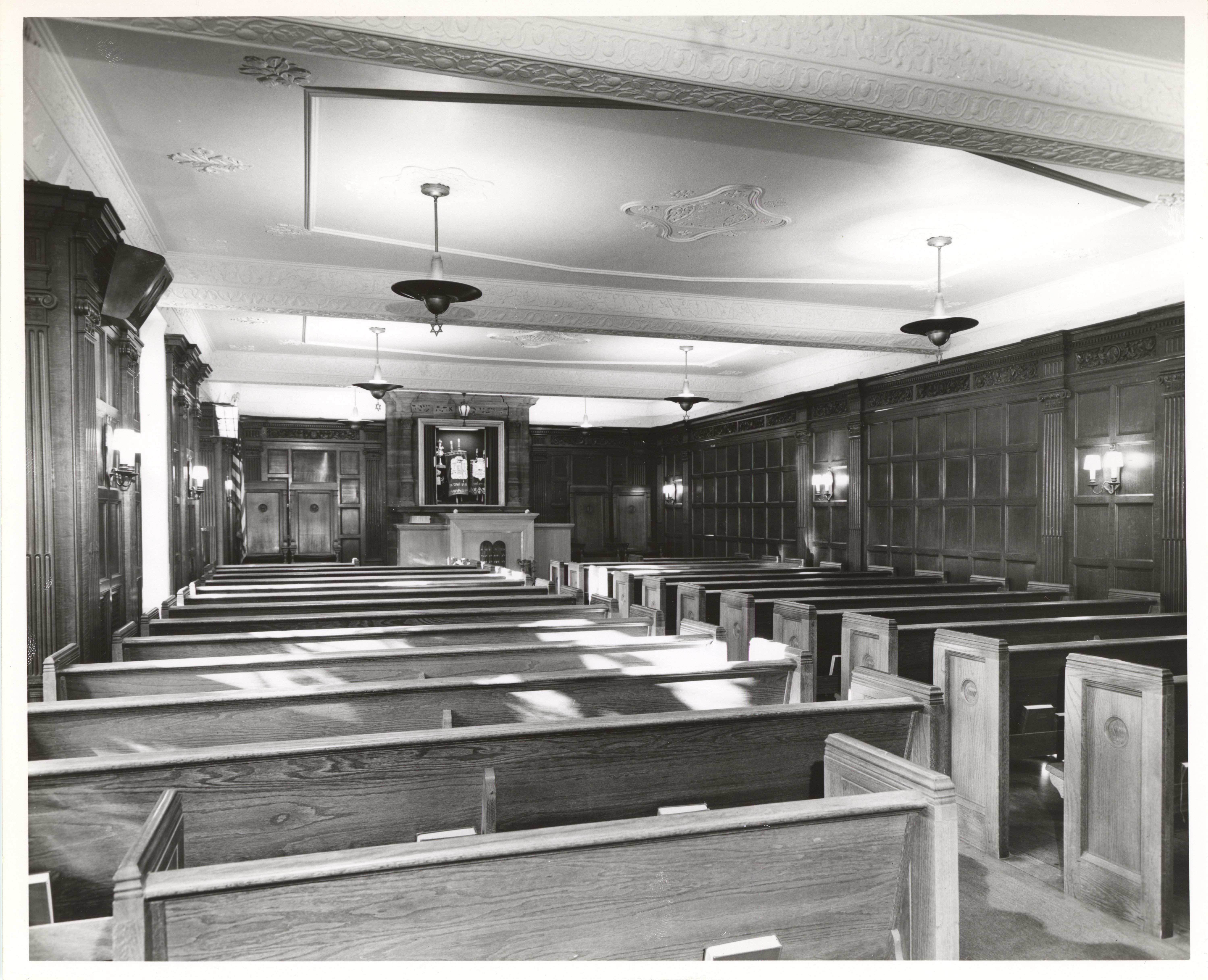 Black and white photograph of Barnett Chapel in Temple Sinai. Date 1957 Identifier MSS_1376_B006_BarnettChapel Collection Temple Sinai (Pittsburgh, Pa.) Records [MSS 1376] Source Rauh Jewish Archives at the Heinz History Center