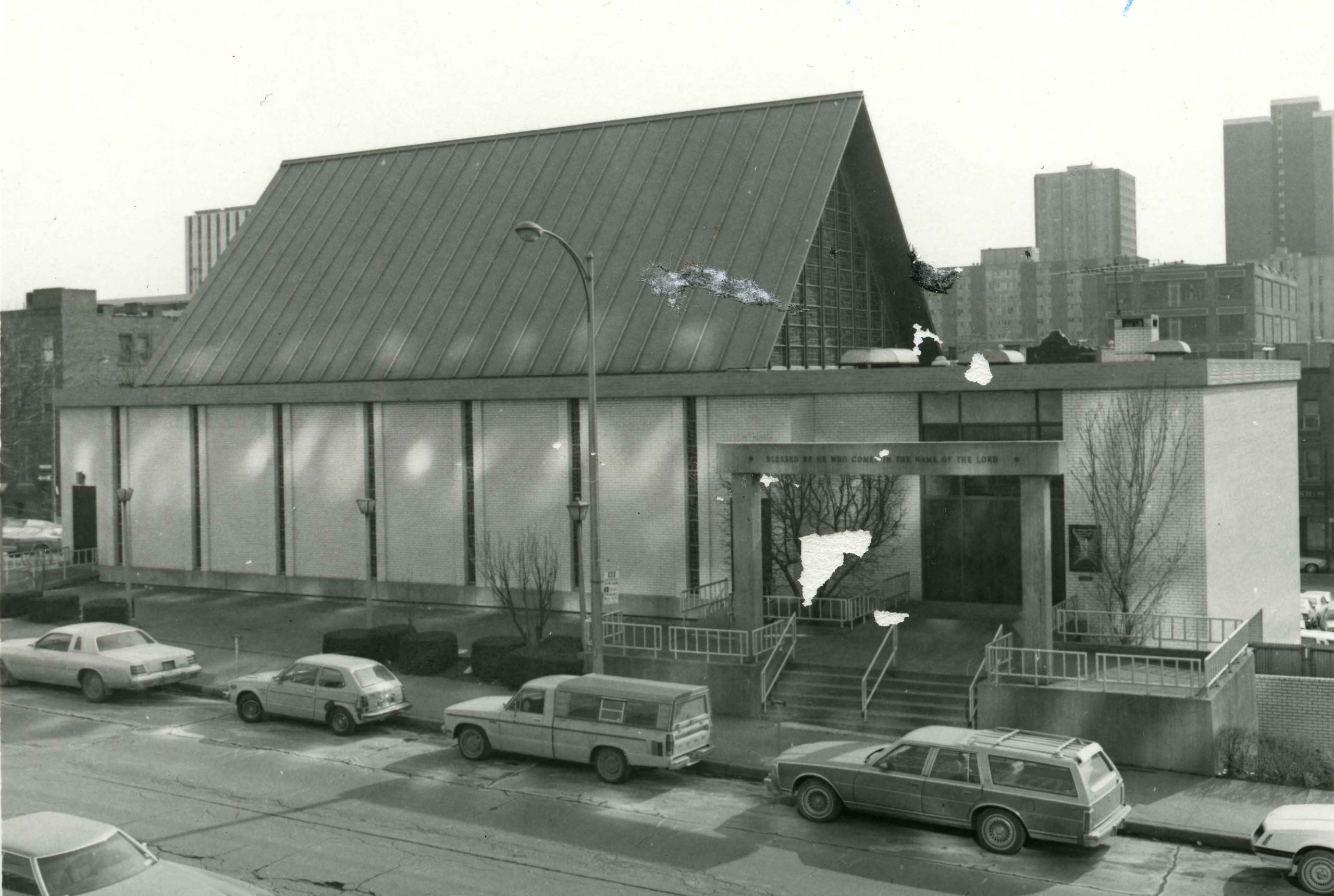 Photograph showing main entrance of Beth Hamedrash Hagodol synagogue on Colwell Street in the Hill District of Pittsburgh. Date undated Identifier MSP113_B002_F018_I01 Collection Corinne Azen Krause Photographs [MSP 113] Source Rauh Jewish Archives at the Heinz History Center