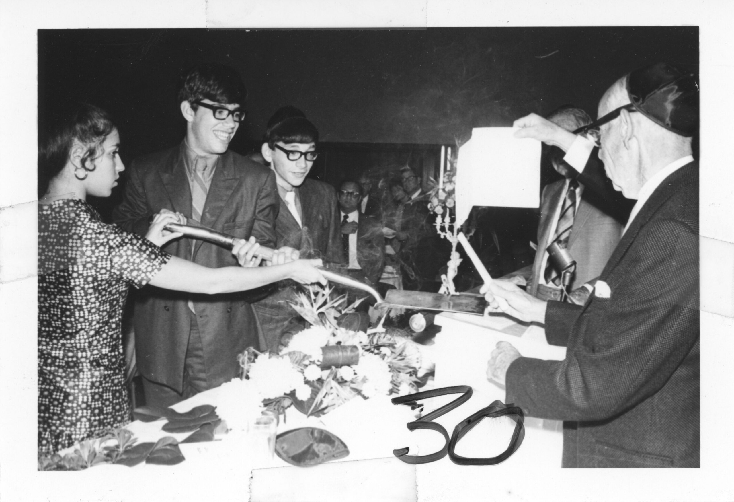 Black and white photograph of the mortgage burning at Beth Israel Synagogue. Date October 11, 1970 Identifier MSS_109_B010_F034_I01 Collection Beth Israel Congregation (Washington, Pa.) Records [MSS 109] Source Rauh Jewish Archives at the Heinz History Center