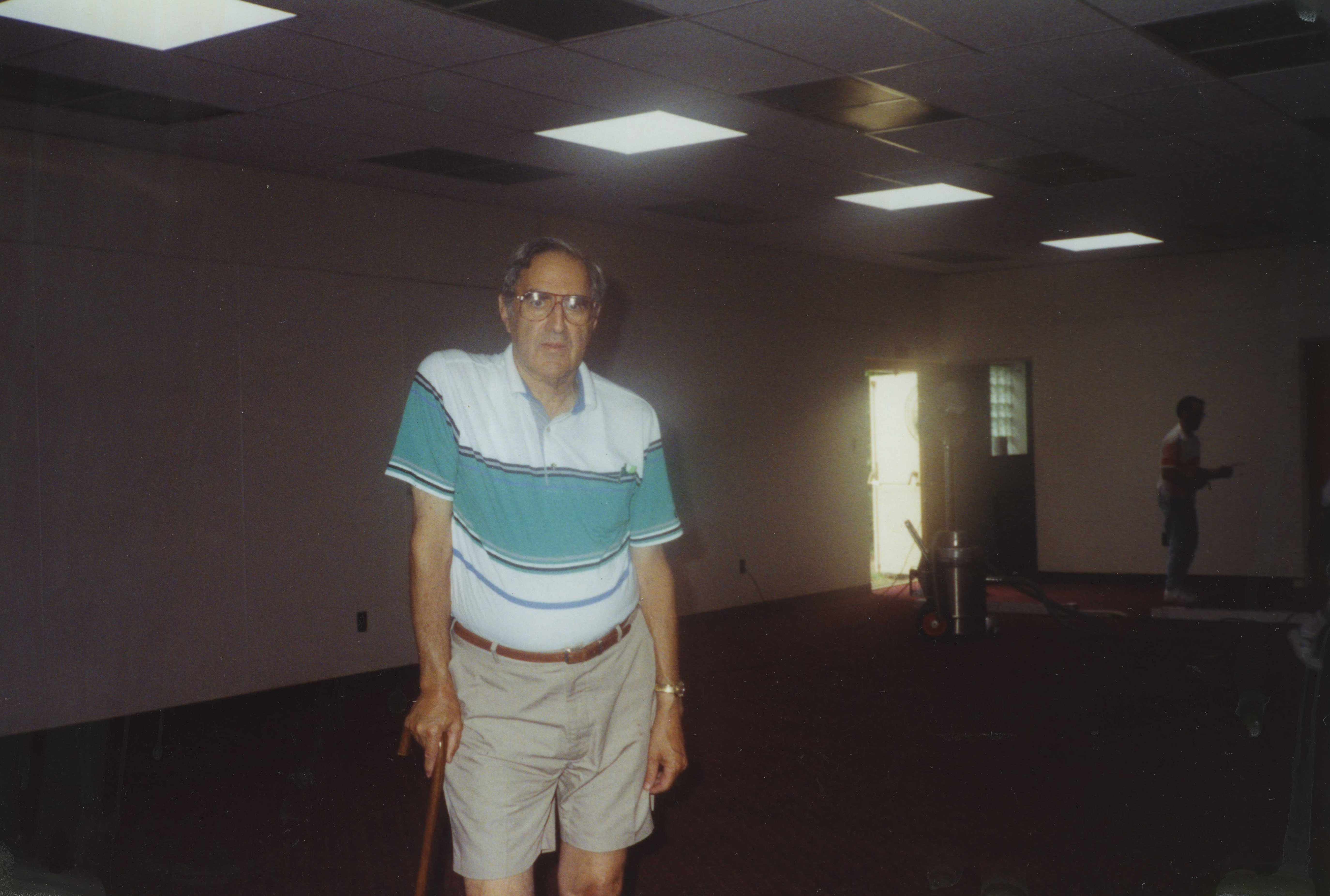 Beth Israel Congregation member Bill Dunhoff in the social hall of the synagogue after crews installed new carpeting. Date 1994 Identifier MSS1067_B001_F001_I002 Collection Beth Israel Congregation (Latrobe, Pa.) Records Source Rauh Jewish Archives at the Heinz History Center