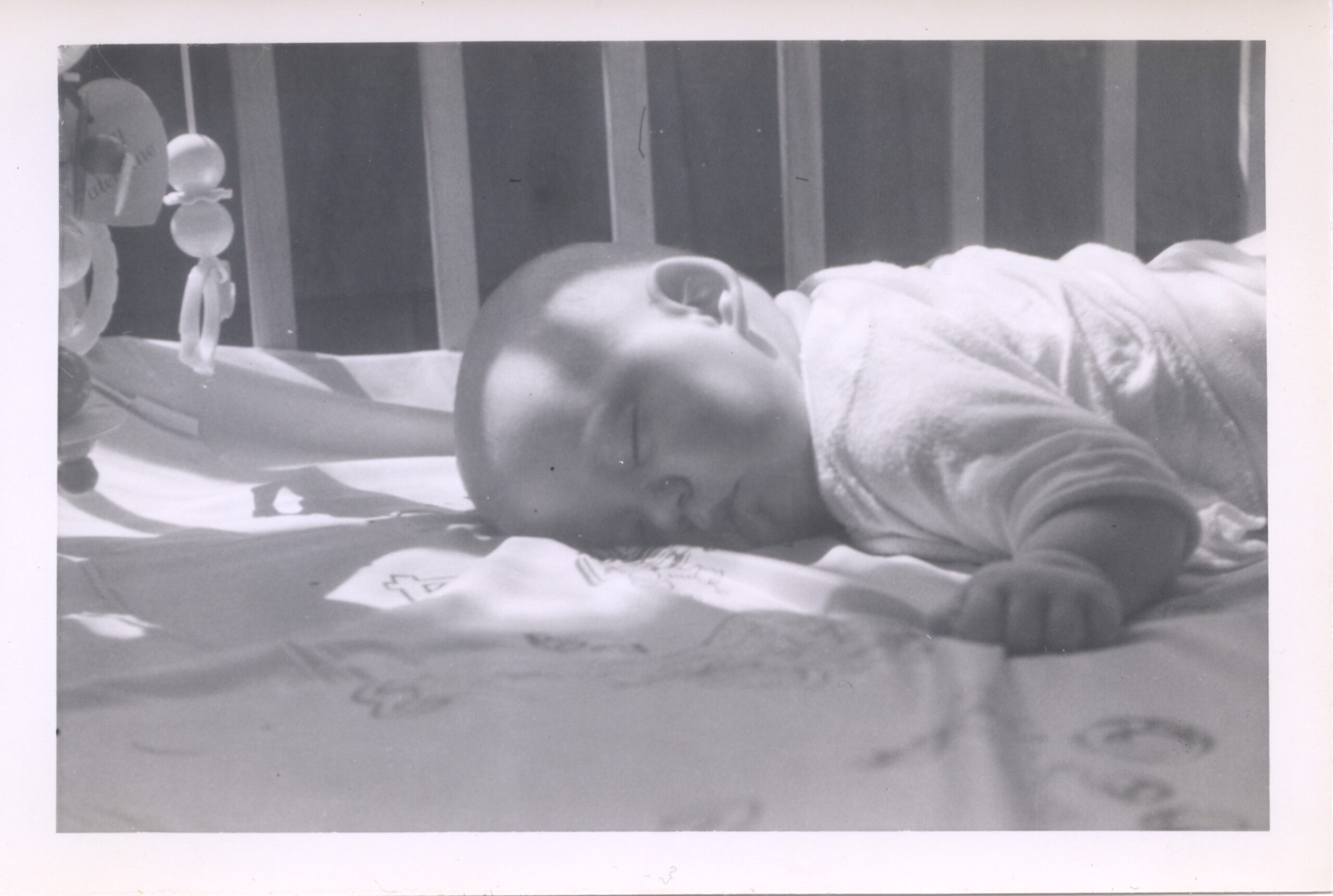 Photograph of a newborn Carol Abrams sleeping in her crib. Date 1950 Identifier MSS_1288_B002_F037_I01 Collection Betty and Irving Abrams Family Papers and Photographs [MSS 1288] Source Rauh Jewish Archives at the Heinz History Center