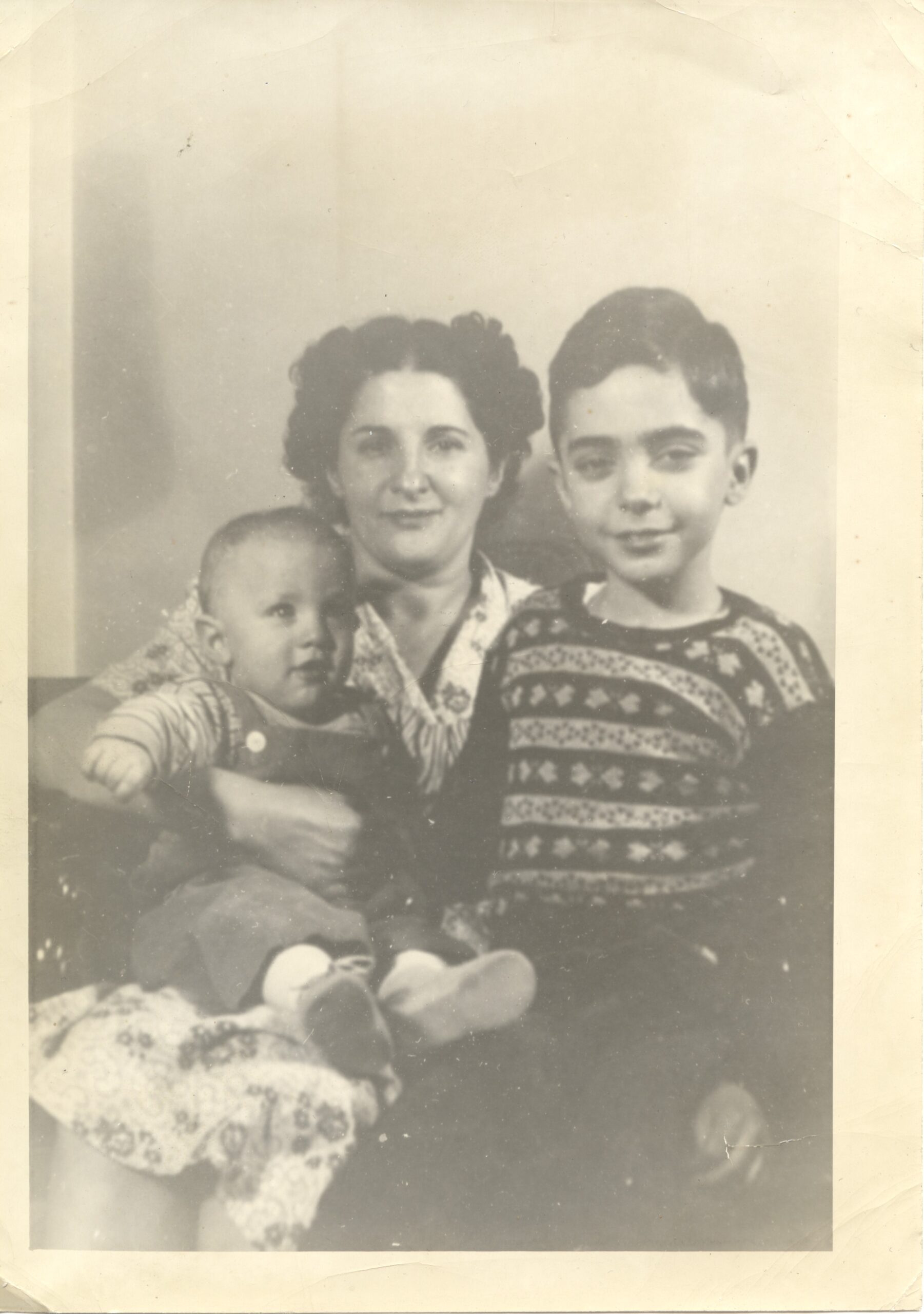 Photograph of Bessie Eisenfeld holding her two sons, (left to right) Lenny and Arnold. Date c.1940s Identifier MSS_1221_B001_F051_I01 Collection Lynne and Blair Jacobson Family Papers and Photographs [MSS 1221] Source Rauh Jewish Archives at the Heinz History Center Family Louis and Fannie Eisenfeld Family : View Family Member