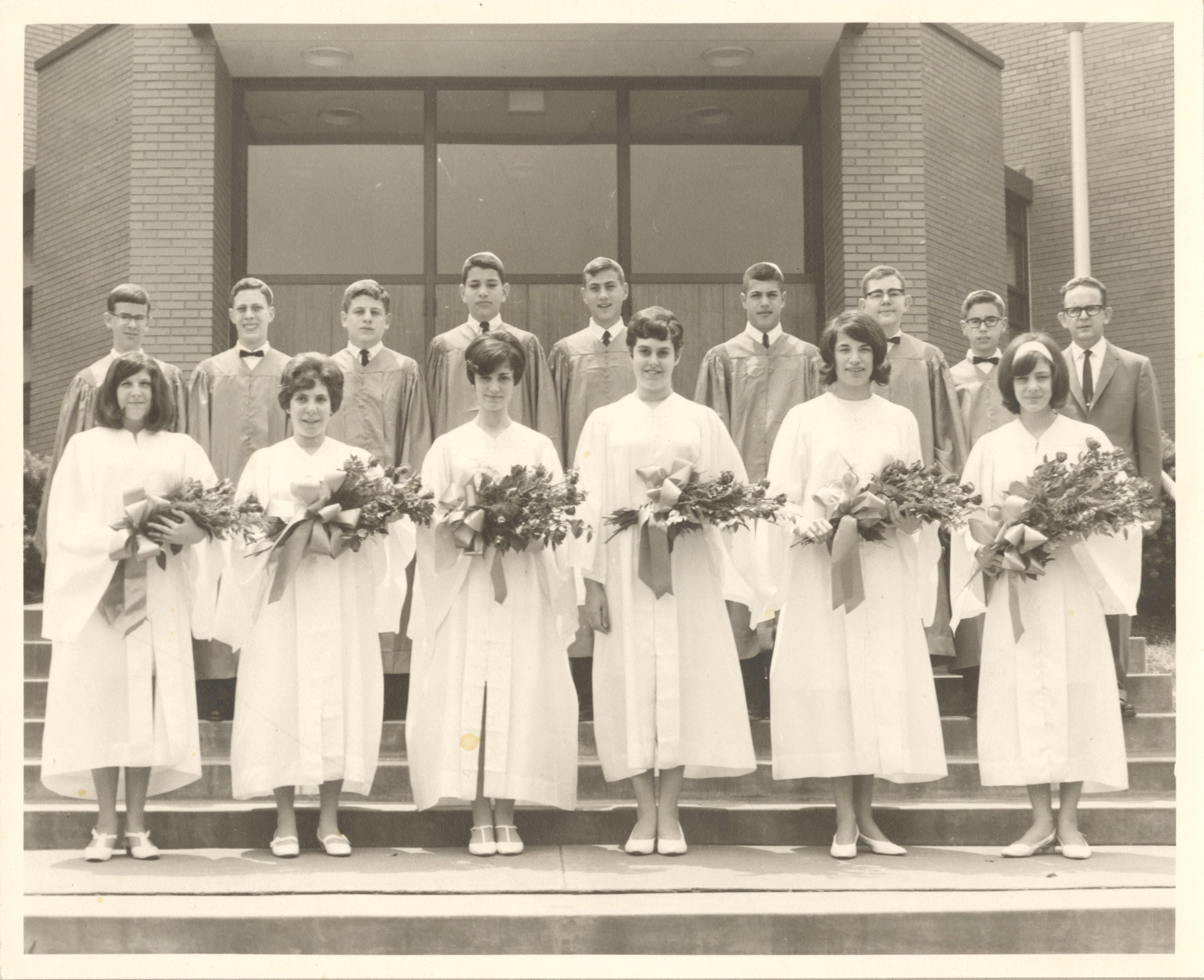 (First row, left to right) Ellen Weiss, Linda Tolchin, Terry Markowitz, Bonnie Jacobs, Marlene Gross, and Cinthia Goldberg. (Second row, left to right) Steven Kessler, Jack Chottiner, Murray Lebowitz, Richard Simon, Martin Markowitz, Jeffrey Eisner, Edwin Rosenzweig, Ronald Greenfield, and Robert Kessler (teacher).