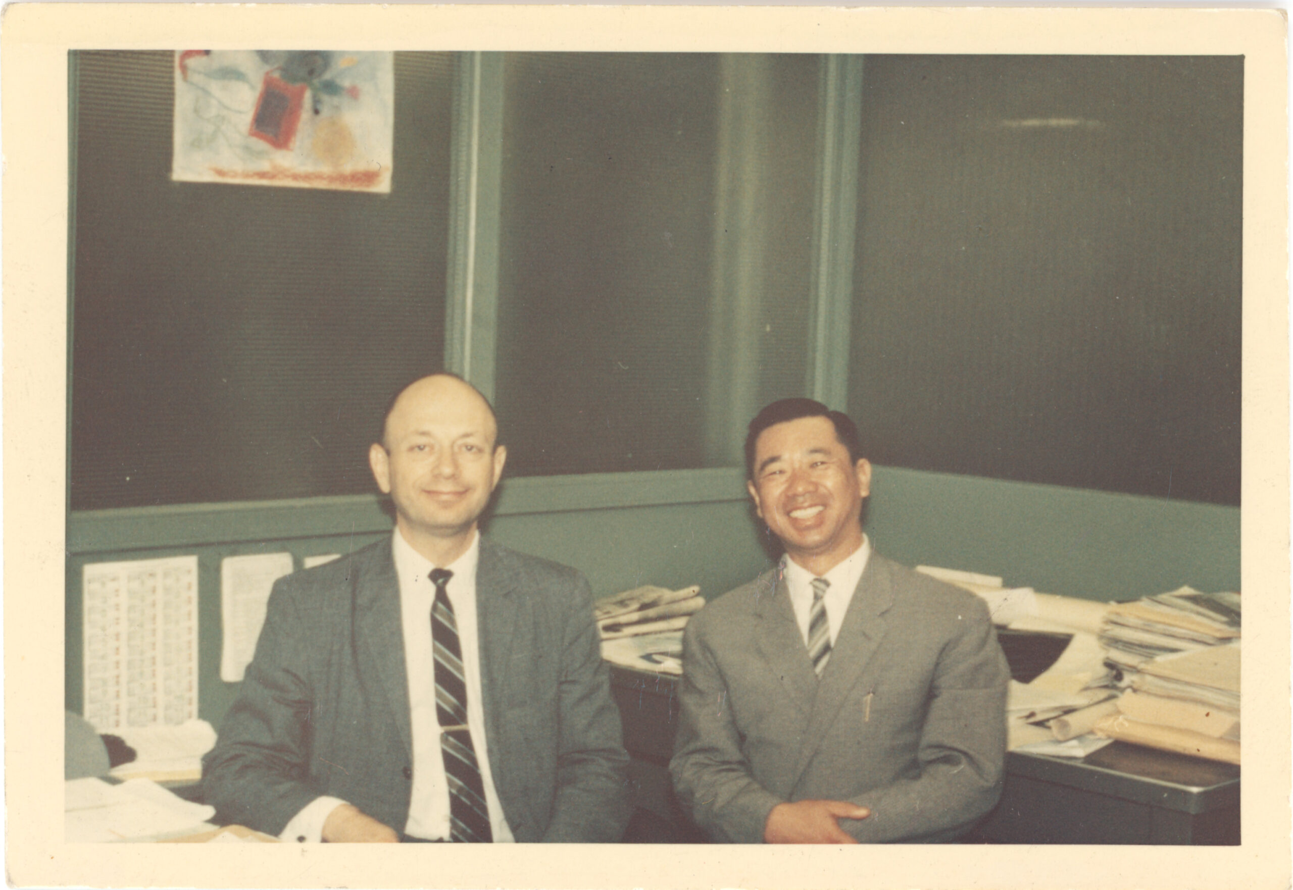 Color photograph of (left to right) Herbert Mandel and fellow engineer Al Yee at Yale University. Date undated Identifier MSS_1353_B001_F001_I02 Collection Herbert Mandel Papers and Photographs [MSS 1353] Source Rauh Jewish Archives at the Heinz History Center
