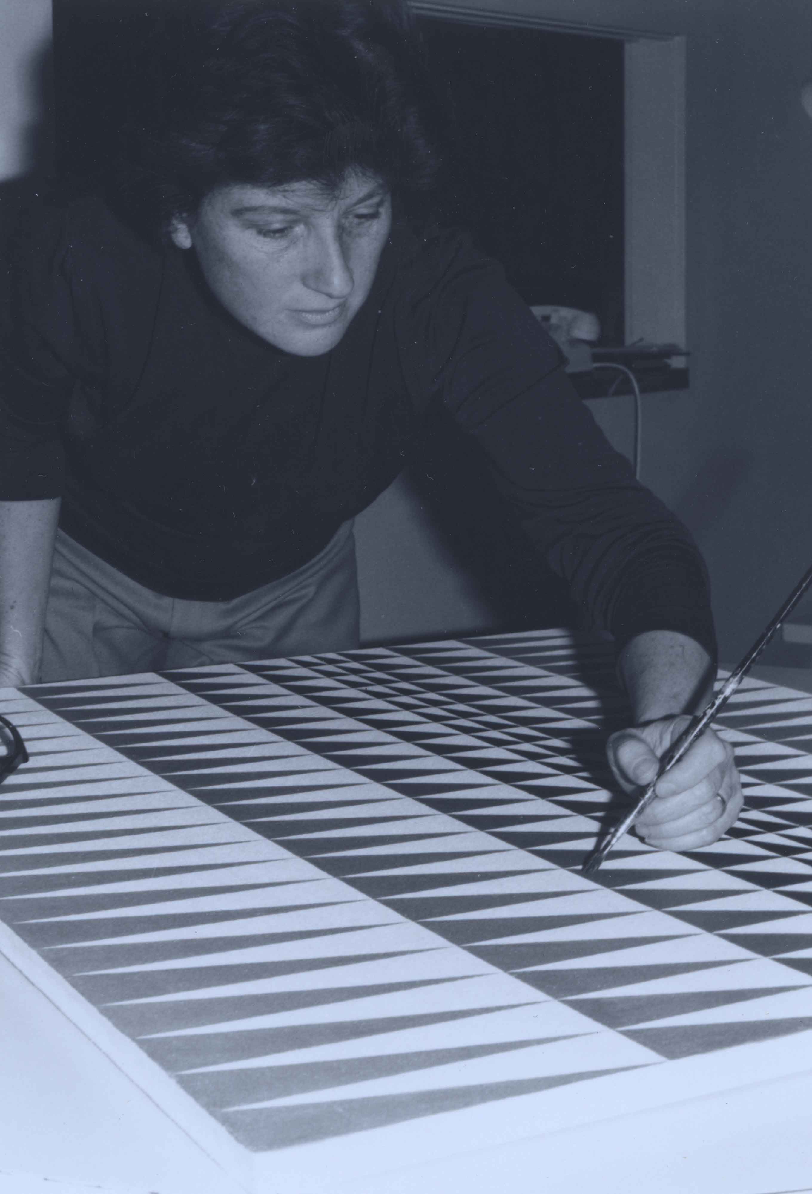Jane Haskell, in her home, working on one of her “op art” paintings. Date November 1967 Identifier MSS1046_B005_F058_I01 Collection Jane Haskell Papers and Photographs Source Rauh Jewish Archives at the Heinz History Center Family The Haskell Family : View Family Member
