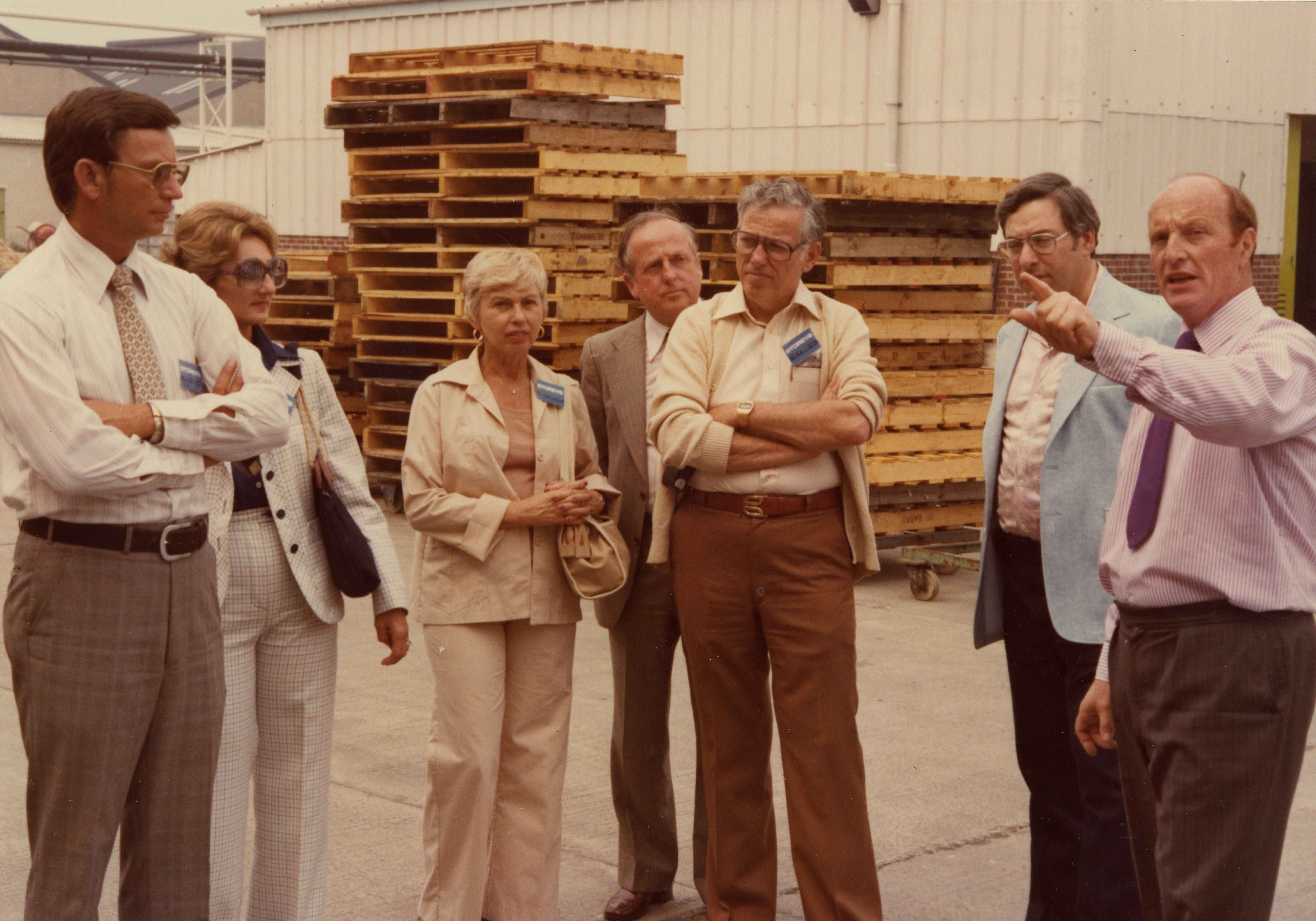 M. A. Baskind Company president Sandy Baskind (arms crossed) and his wife Shirley on a business trip to England.