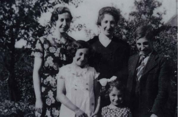 Johanna Adelsheimer Silbermann (standing center) with her sister Paula Adelsheimer (standing left) and her children Herbert, Hilda and Marga, in the garden of their house in Shermbeck, Germany.