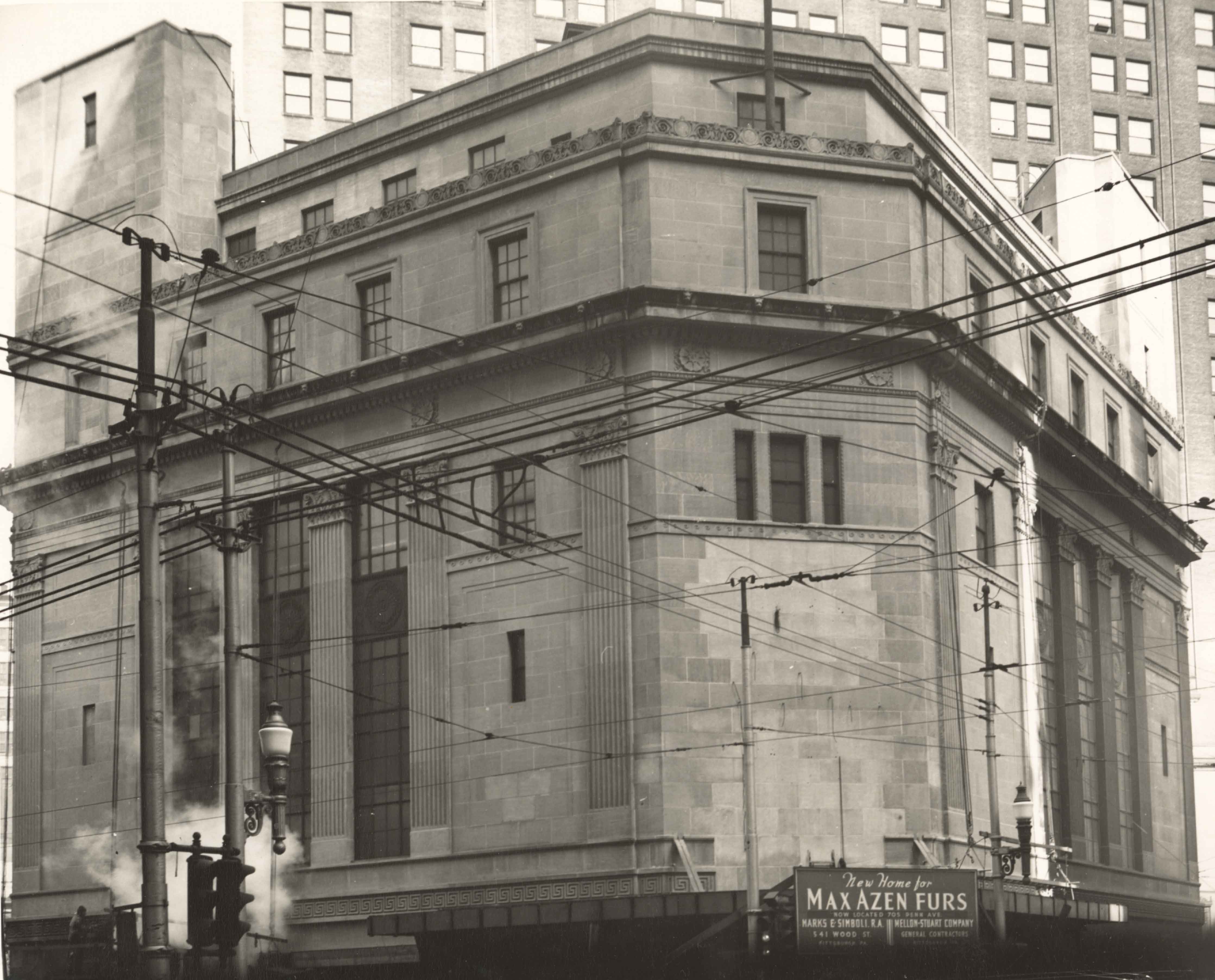 Max Azen converted the former Monongahela National Bank into an expanded location for his downtown furrier business. The building is currently home to the Wood Street Galleries.