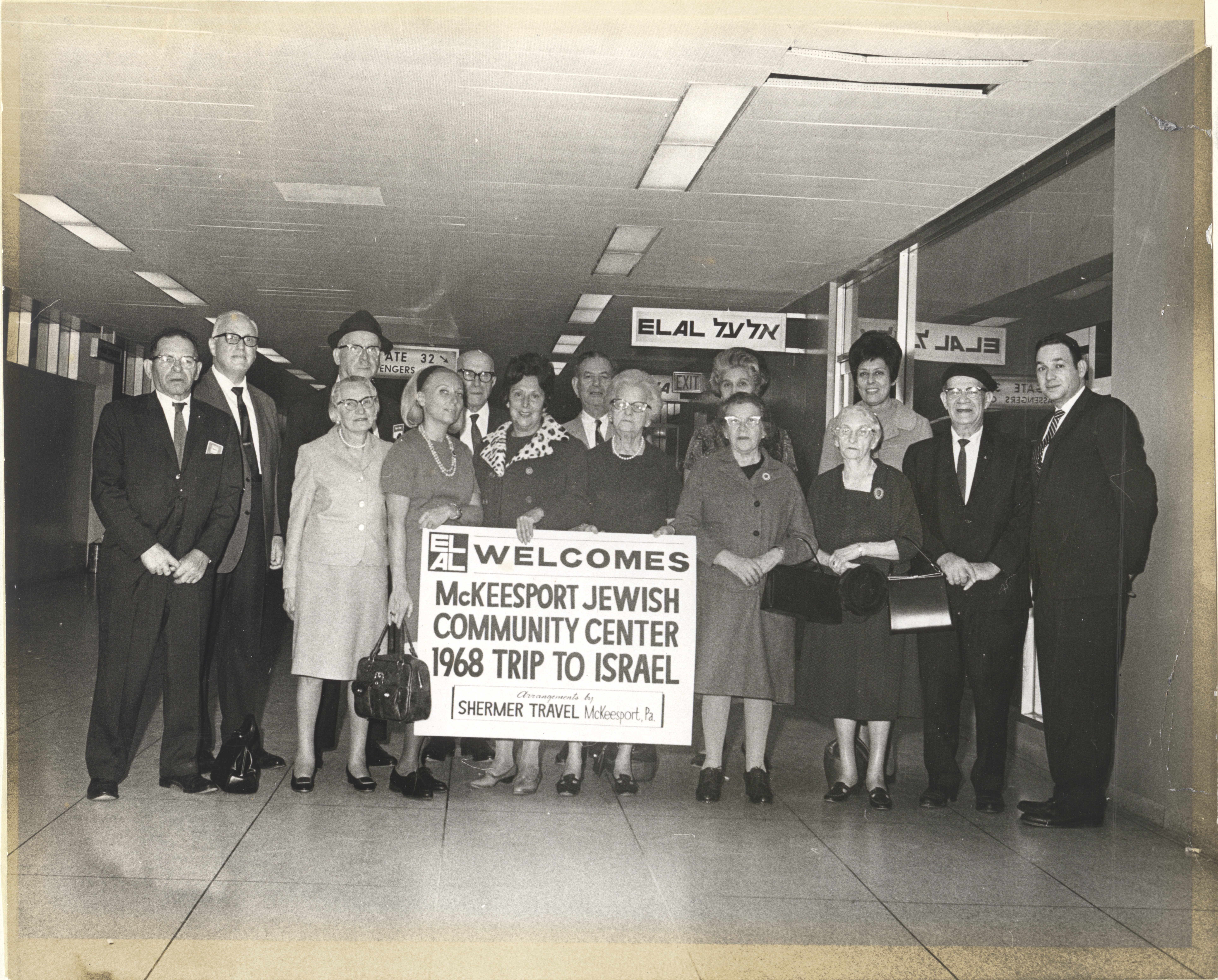 Photograph of McKeesport community members in Ben Gurion Airport in Israel as part of Rabbi Irvin Chinn’s annual trip. Date 1968 Identifier MSS_1314_B009_F002_I02 Collection Gemilas Chesed Congregation (White Oak, Pa.) Record [MSS 1314] Source Rauh Jewish Archives at the Heinz History Center