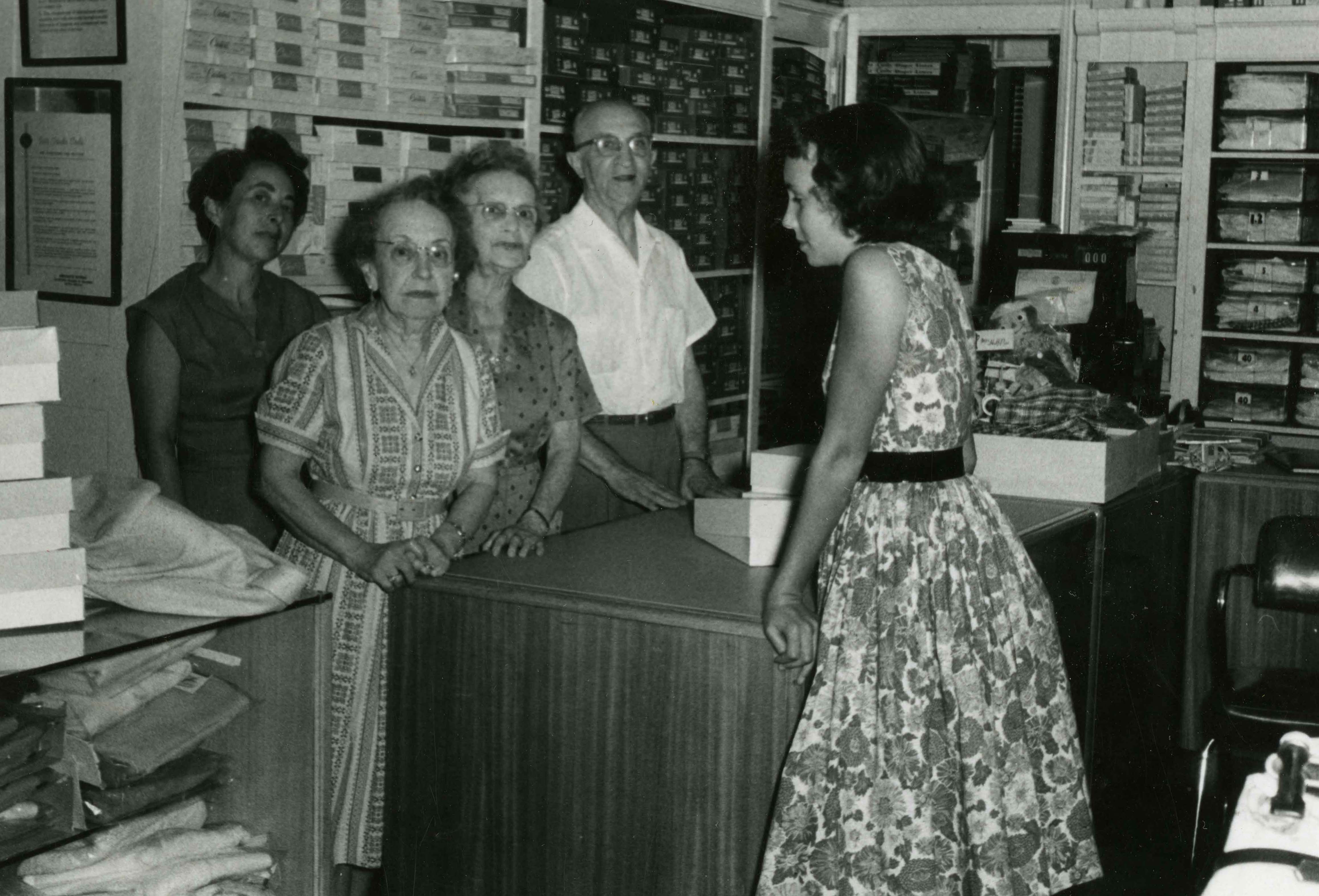 Flora Michael (third from left) owned Mrs. Michael’s Children’s Shop for more than 50 years. She died the year after this photograph was taken.